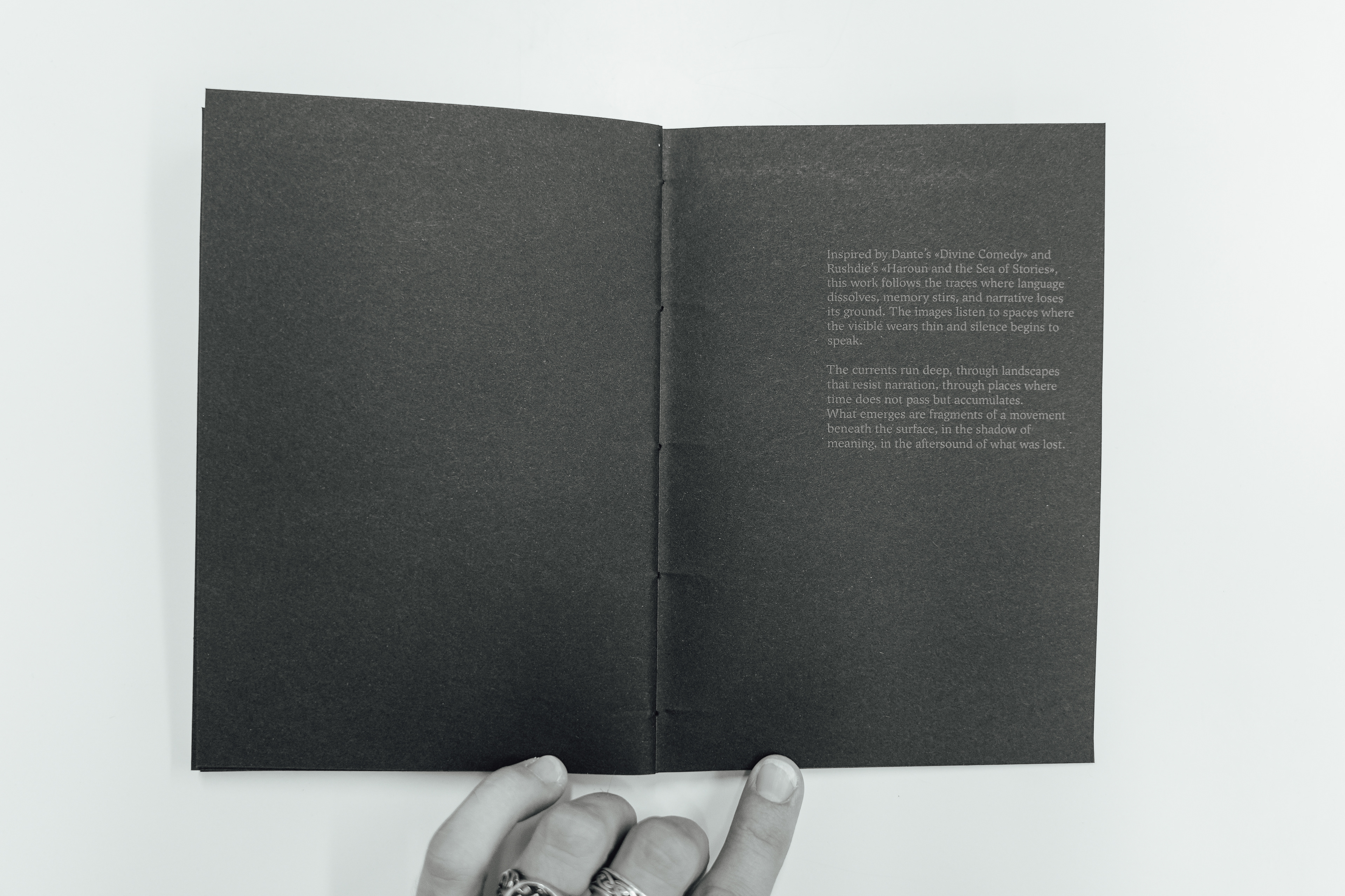 Inspired by Dante’s «Divine Comedy» and Rushdie’s «Haroun and the Sea of Stories», this work follows the traces where language dissolves, memory stirs, and narrative loses its ground. The images listen to spaces where the visible wears thin and silence begins to speak. The currents run deep, through landscapes that resist narration, through places where time does not pass but accumulates. What emerges are fragments of a movement beneath the surface, in the shadow of meaning, in the aftersound of what was lost.